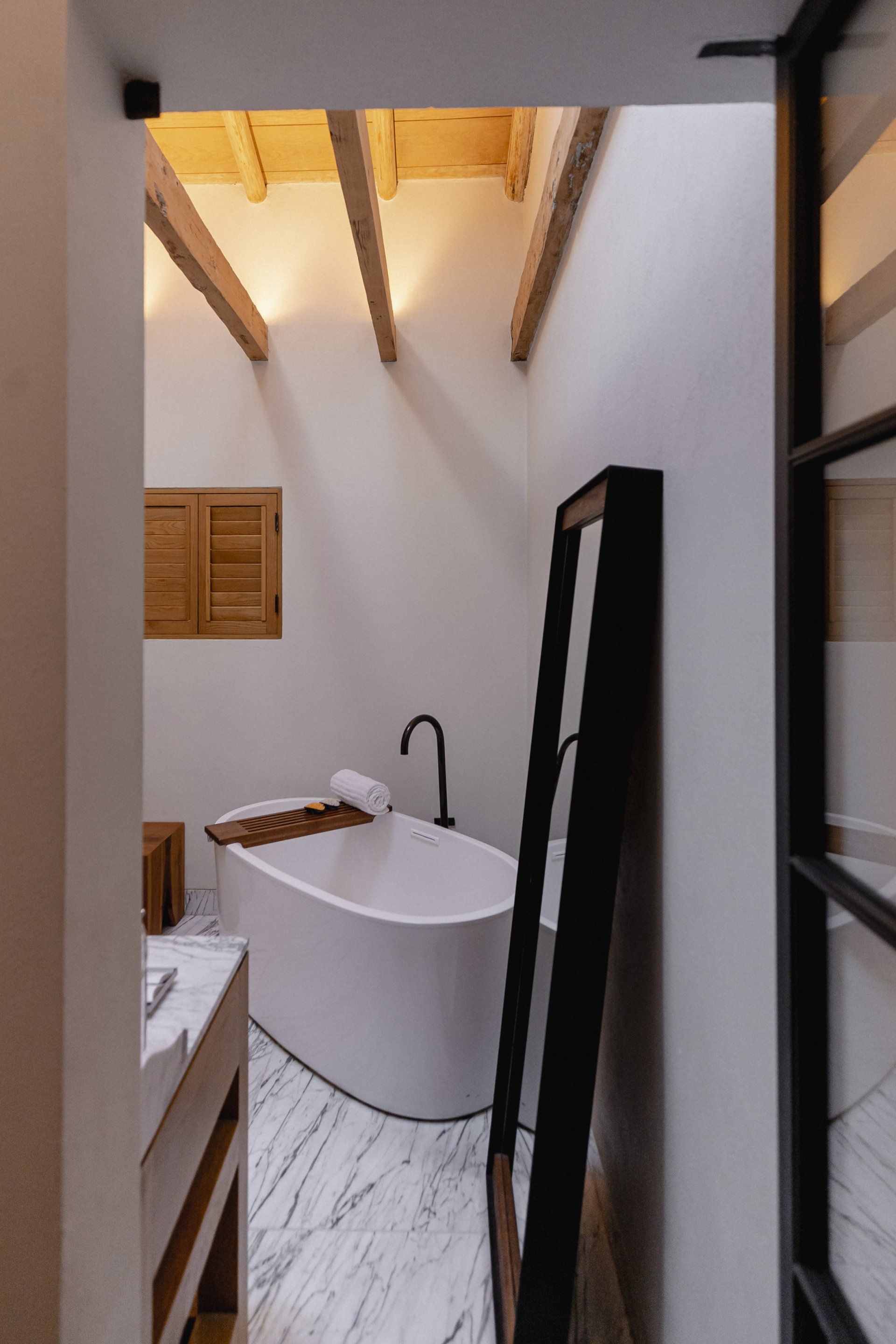 This room offers a king-size bed, a bathroom with a shower, and a beautiful bathtub. Its doors open onto the central courtyard of this spectacular colonial house. It is located on the ground floor and close to the hotel's reception and entrance, making it very accessible.