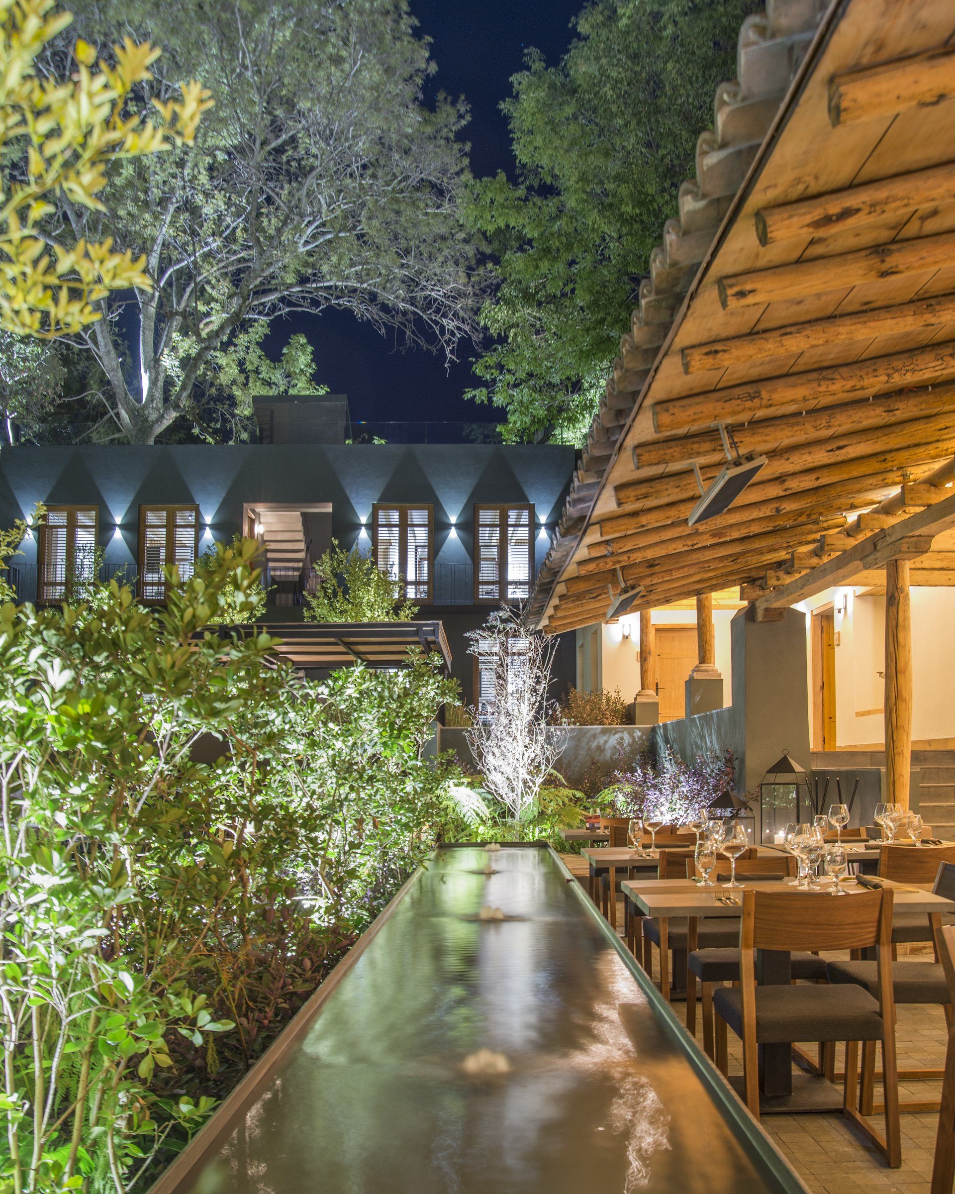 Disfruta de nuestra terraza rodeada de naturaleza o del comedor íntimo con vista al jardín. Perfecto para una cena romántica, una comida entre amigos o un brindis al atardecer.